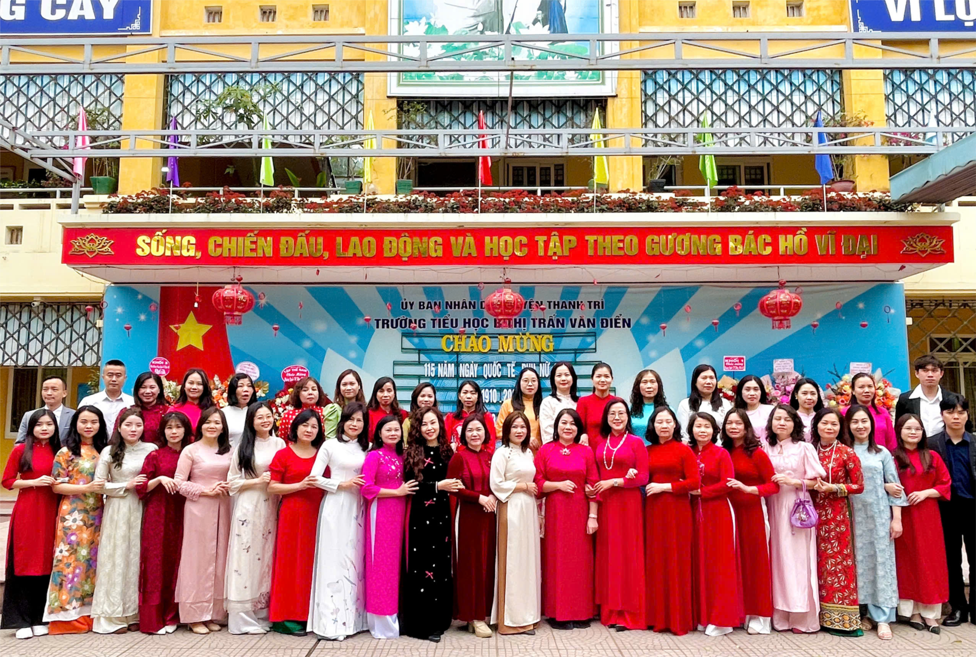 Trong không khí rộn ràng của Tuần lễ Áo dài Việt Nam, trường Tiểu học B Thị trấn Văn Điển đã tưng bừng tổ chức chương trình Diễn thời trang Áo dài với sự tham gia của các thầy cô giáo và các em học sinh. Sân trường hôm nay rực rỡ hơn bao giờ hết khi những tà áo dài thướt tha tung bay, mang theo niềm tự hào về trang phục truyền thống của dân tộc.