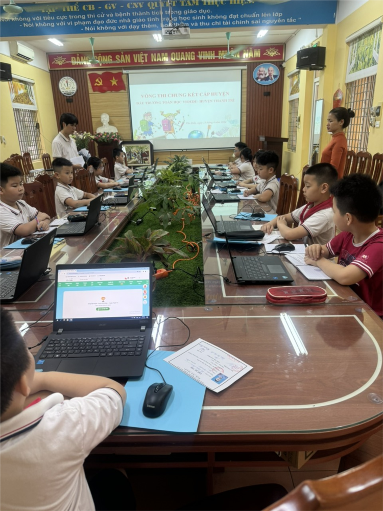 Đấu trường Vioedu là một sân chơi được rất nhiều phụ huynh và các em học sinh quan tâm. Sân chơi là một hình thức trải nghiệm học tập bổ ích, lý thú, khuyến khích các em học sinh tương tác và ứng dụng Công nghệ thông tin trong học tập một cách tích cực, chủ động, nội dung kiến thức phù hợp với lứa tuổi học sinh Tiểu học. Đồng thời bồi dưỡng, động viên kịp thời những học sinh có năng khiếu và đạt thành tích cao trong bộ môn Toán. Đặc biệt đối với các em học sinh lớp 1, đây là một sân chơi mới mẻ khi lần đầu tiên các em tham gia một cuộc thi Toán học trực tuyến. Đấu trường Toán học giúp các em có những bước tính toán cẩn thận hơn, thời gian cuộc thi có giới hạn các em học được cách giải hiệu quả và chính xác trong thời gian ngắn nhất, qua đó rèn luyện kỹ năng học toán nhanh và cẩn thận, phát huy khả năng tư duy cho các em. Sáng ngày 15/4/2024, 110 học sinh của các khối từ lớp 1 đến lớp 5 trường Tiểu học B Thị Trấn Văn Điển đã tham gia thi cấp Huyện.