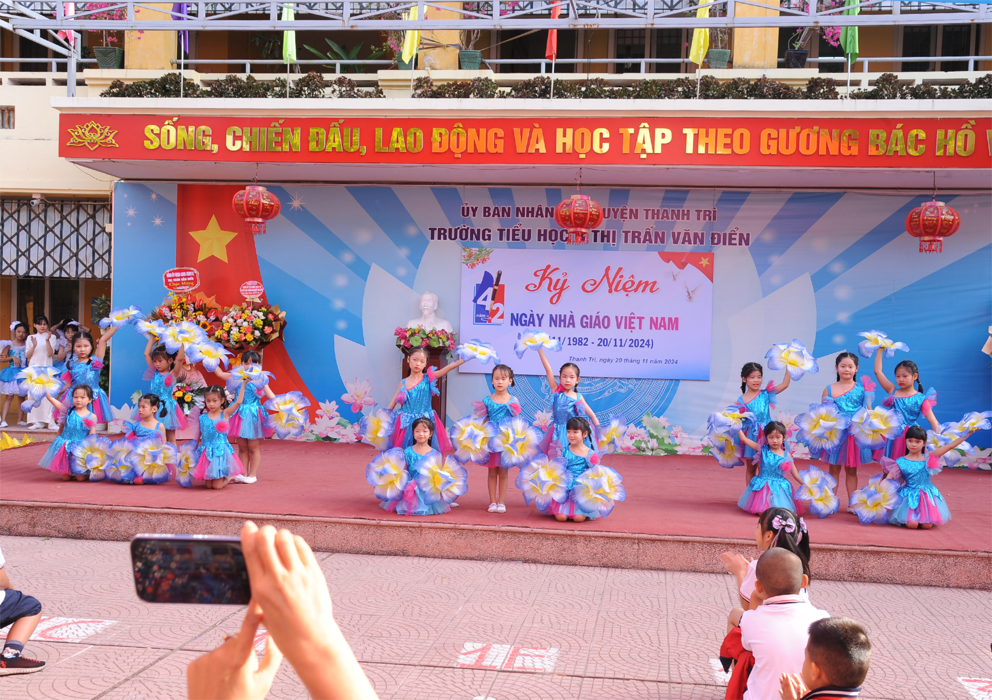 Sáng nay, ngày 20 -11-2024 nhà trường long trọng tổ chức kỉ niệm 42 năm Ngày Nhà giáo Việt Nam (20/11/1982-20/22/2024)tràn ngập niềm vui, niềm tự hào của lớp lớp thế hệ thầy cô, niềm vui lớn nhất đó là được sống trong một môi trường giáo dục tràn ngập sự yêu thương, chia sẻ, giúp đỡ nhau của đồng nghiệp, của các cấp chính quyền, các ban ngành đoàn thể, hội cha mẹ học sinh và toàn thể nhân dân đã dành cho nhà trường. Trong buổi kỉ niệm nhà trường đã tuyên dương khen thưởng đ/c Nguyễn Thị Minh Phương - Bí thư Chi bộ - Hiệu trưởng nhà trường, đc Triệu Phan Phương nhận SKKN cấp Thành phố, cùng 10 đ/c cán bộ giáo viên đạt danh hiệu Chiến sĩ thi đua cơ sở. Trong những năm qua được sự quan tâm của các cấp lãnh đạo, sự nghiệp giáo dục của trường Tiểu học B Thị Trấn Văn Điển có nhiều khởi sắc và phát triển. Sự chuyển mình mạnh mẽ về cơ sở vật chất, nhà trường có đầy đủ trang thiết bị phục vụ tốt cho công tác giảng dạy cho đến các hoạt động thi đua dạy tốt và học tốt, khuôn viên nhà trường khang trang sạch đẹp tất cả đã tạo nên một ngôi trường hạnh phúc.